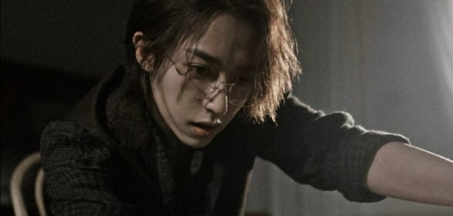 温柔的刘海在额头呈现一抹弧度,浓密的黑短发。睫毛向上弯翘,但双眼皮下的眼睛却猩红的让人不寒而栗。