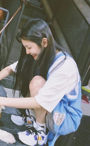 他面前的女生蹲着的女生侧脸精致,低着头正仔细翻找着什么东西,突然露出了笑容。