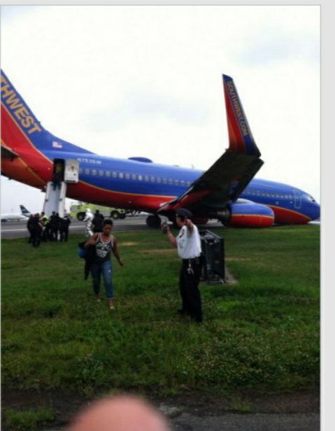西南航空345号班机在纽约拉瓜迪亚机场的事故现场(波音737-700)(事故发生于2013年7月22日,这个机组很坑,不过还好没坑出人命)