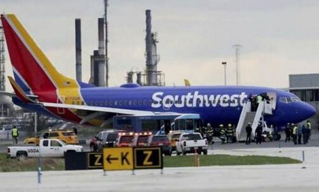 西南航空1380在费城国际机场迫降后的情景(波音737-700)(事故发生于2018年4月17日,这是个英雄机组)