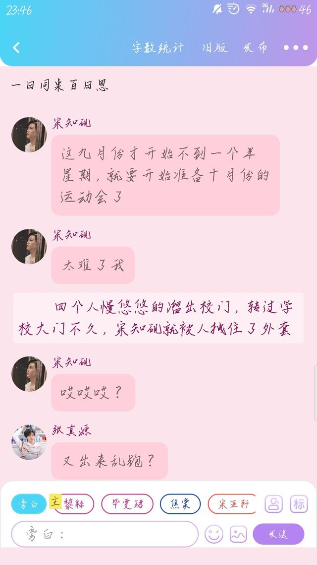 林汐凉操着一口奇奇怪怪的方言口音贱嗖嗖的调侃张真源和宋知砚,被宋知砚赠送了拳打脚踢开学大礼包