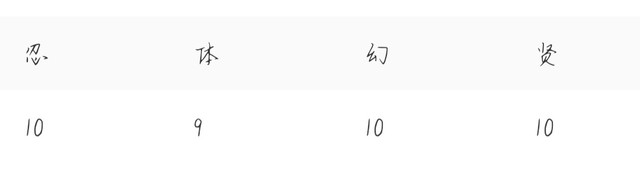 忍:10,体:10,幻:10,贤:9