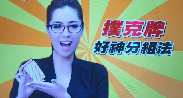 黄菲老师解释这副扑克牌她会挑出红心和黑桃,然后发下去一人一张,选到同一个号码的人就是一组。