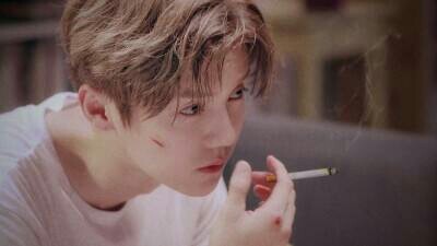 鹿晗此刻香烟过半,一抬头便看见了女孩儿抱着一大捧鲜花,手里还拿了一朵