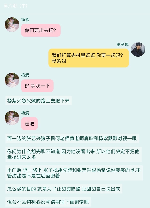 因为胡先煦不知道这个计划 所以他看甜甜自己一个人在后面 也不聊天了 站着原地不动 等着甜甜
