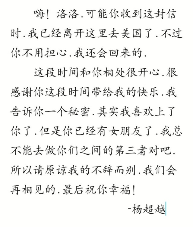 但是售票员给了他一封信说是杨女士给他的.他打开一看.是杨超越给她的信