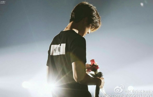 吴世勋抿着嘴静静的等着林姝锦,像个孩子一样手中拿着花