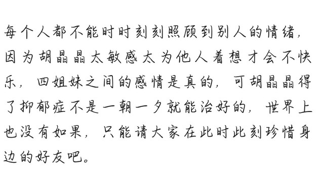 李梓潼她是我们的开心果,她把所有的快乐都给了我们,本以为所有人都会抑郁,她肯定不会,他那么乐观,可我没想到,她居然会自杀