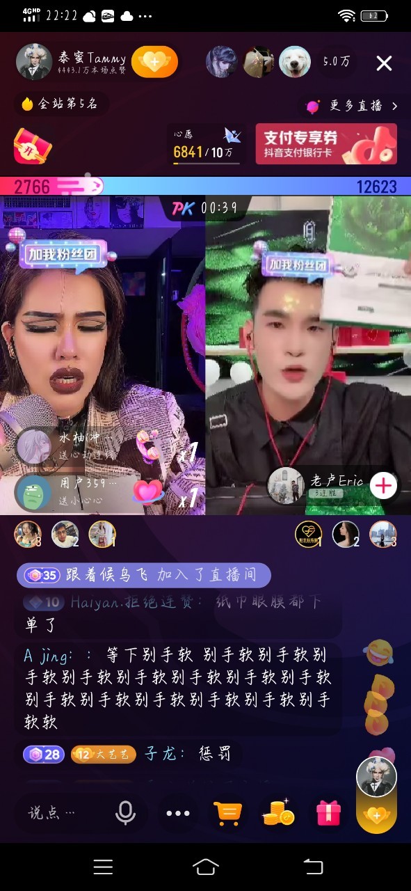 李梓潼老公,我给你说哈,刚才泰蜜和那个小华坨在直播间pk,第一轮她输了