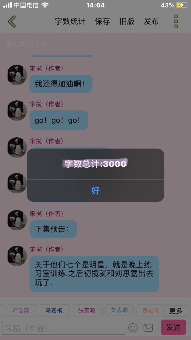 宋揽(作者)关于他们七个是明星,就是晚上练习室训练.之后初揽就和刘思嘉出去玩了.