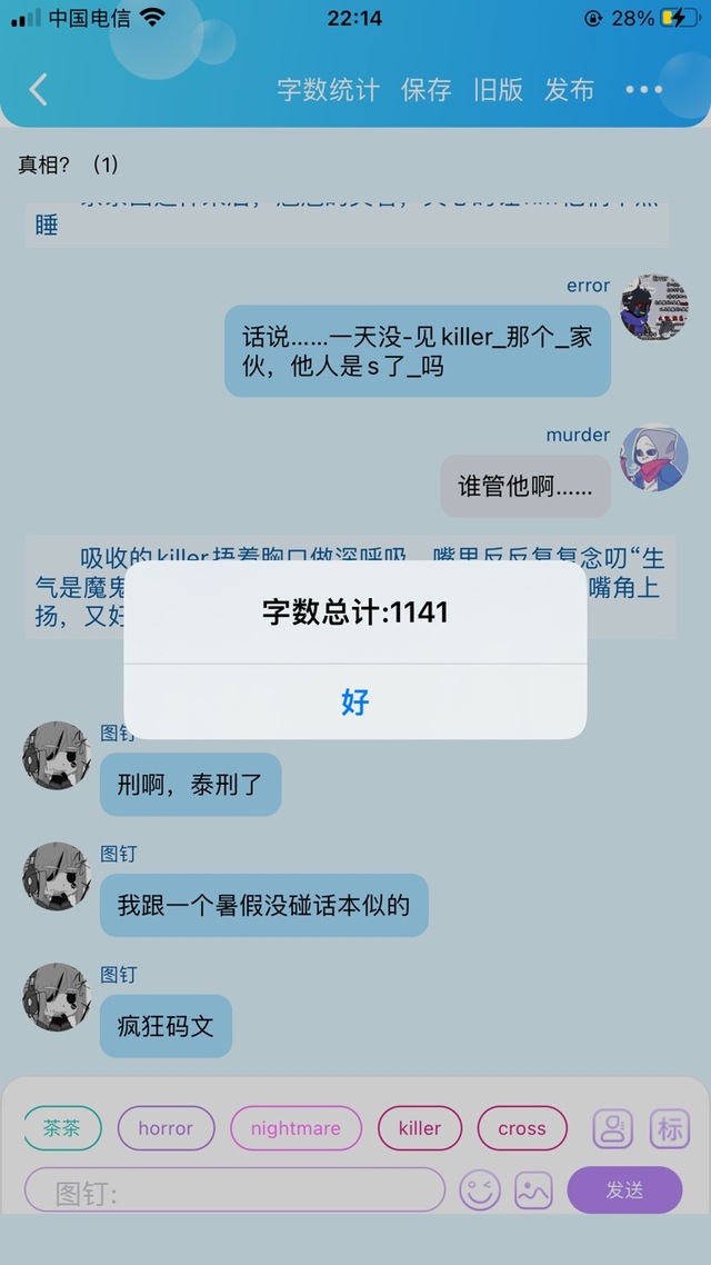 murder没有说话,但青红(不知道对不对)的眼睛在黑暗下发着光,略显了一些压迫感