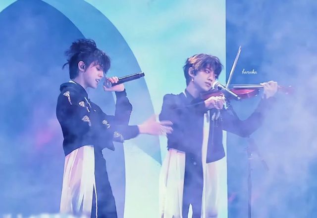两人配合默契,一人唱另一人rap,中间还有段陈天润的小提琴,现场氛围感直接拉满。