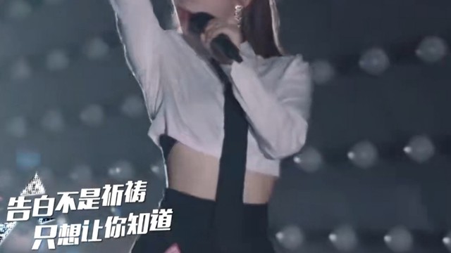 到了许安宁的rap部分,她走到中央,大家在旁边齐舞,她开始说唱.
