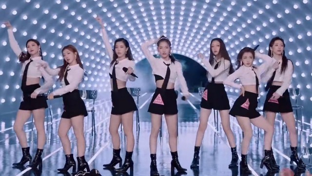 裴嬑走到一边飙完整个高音,再走位回到队伍中.