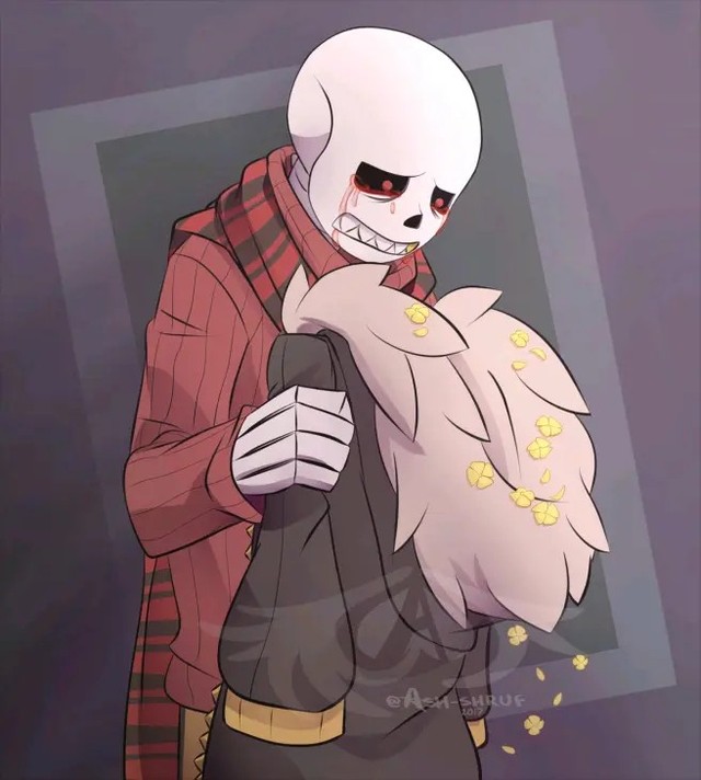 Frisk把外套给了Sans,Sans看到上面的黄色小花,好像知道了什么,他忍不住的也哭了起来。