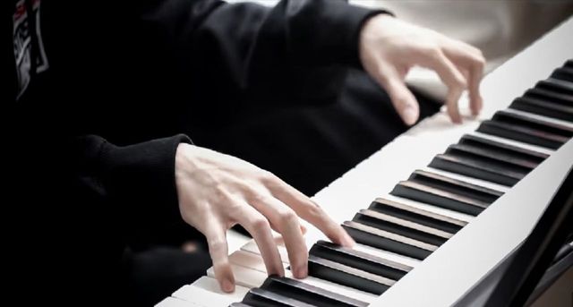 室内,你看到马嘉祺穿着黑色又简约的衬衣坐在钢琴前,指节分明的双手搭在上方井然有序的弹着钢琴键。