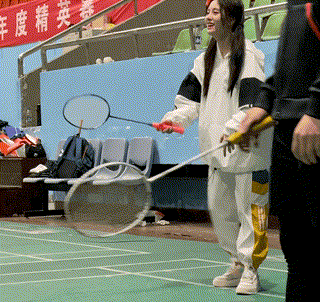 程思琪和杨超越开始打羽毛球