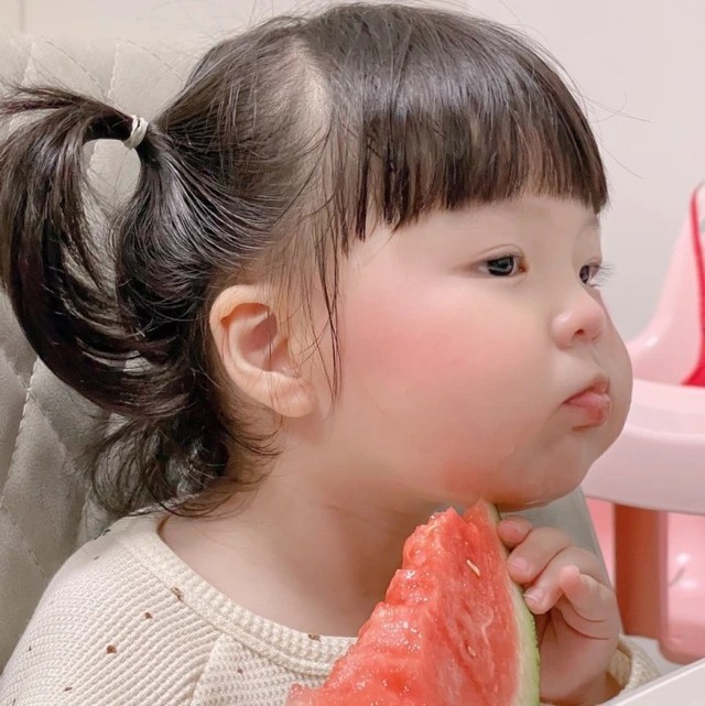 宋亦可从客厅拐角处探出一个头,他妹妹肉肉的嘴塞着西瓜,脸颊鼓鼓囊囊的。