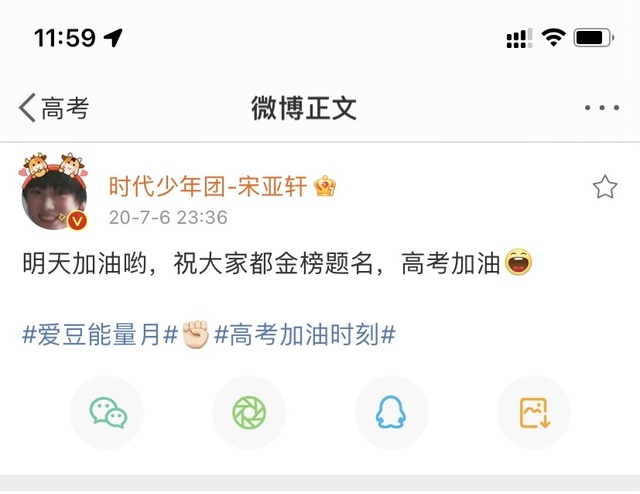 宋亚轩她明天就要高考了 发个微博吧 她现在一定很紧张
