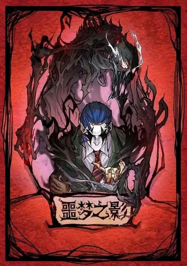 红色背景,卡牌的中央是蓝色色调的绅士,是“噩梦之影”。