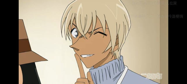 柯南看向安室透,这个时候安室透举起一根手指放在嘴边,向柯南眨了一下眼睛