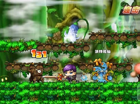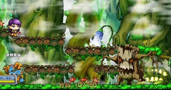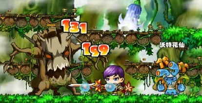 雪燕飞,一直对树怪王使用了剑旋风,破空斩,大地崩坏,冲刺,大地崩坏,蓝条消耗完之后,加上水仙的三连普攻,总算把这个树怪王给消灭了,