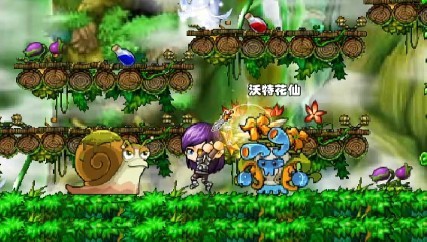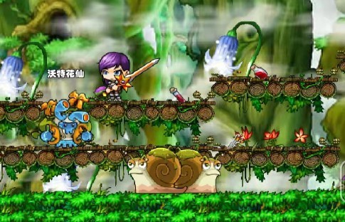 雪燕飞,慢慢走下去,对树怪和蜗牛怪使用的破空斩,冲刺剑,大地崩坏等等技能,才将这两种怪物给消灭,