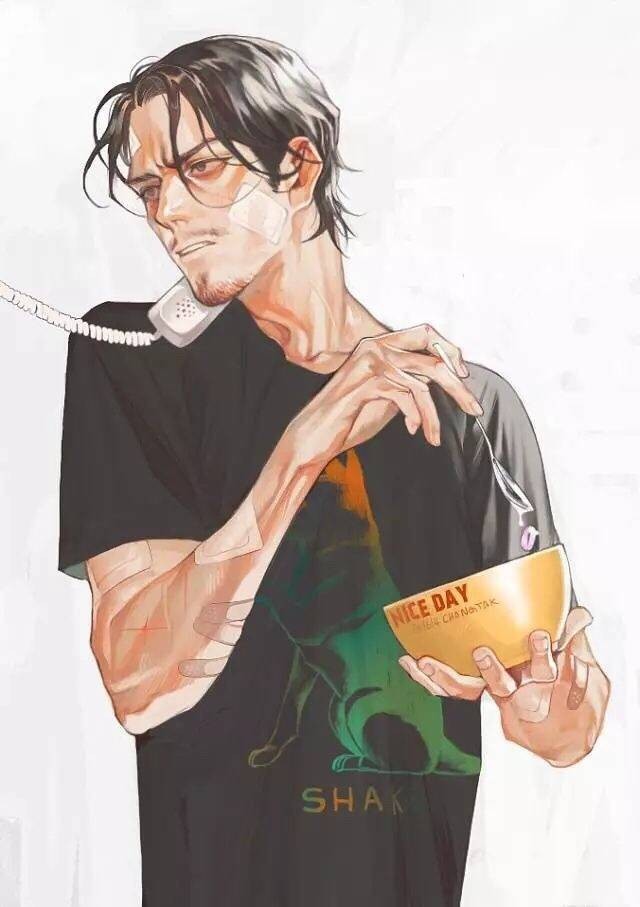 刚一进门,大叔就站在门旁,身穿一件黑色t恤,手里捧着一碗萝卜,肩膀和下巴夹着电话,脸上和手上还有一些上着药的伤口,大约是摘萝卜的时候弄的。