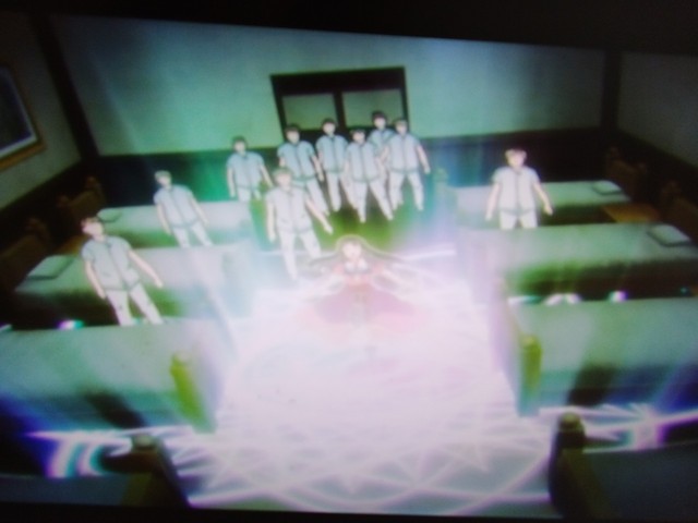 周围闪现这白蓝色和金色的光芒,在她们身下出现一个古老而神秘的魔法阵