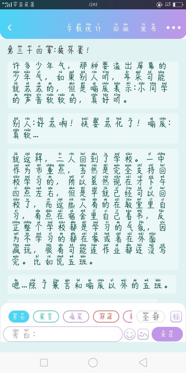 打开了宿舍门,景言把书包放好后,就把牛仔褂脱了下来,之后就打算出门把外套洗一下。喻辰当然清楚景言的小心思,就一把把正在往门口走的景言拉住了,问道: