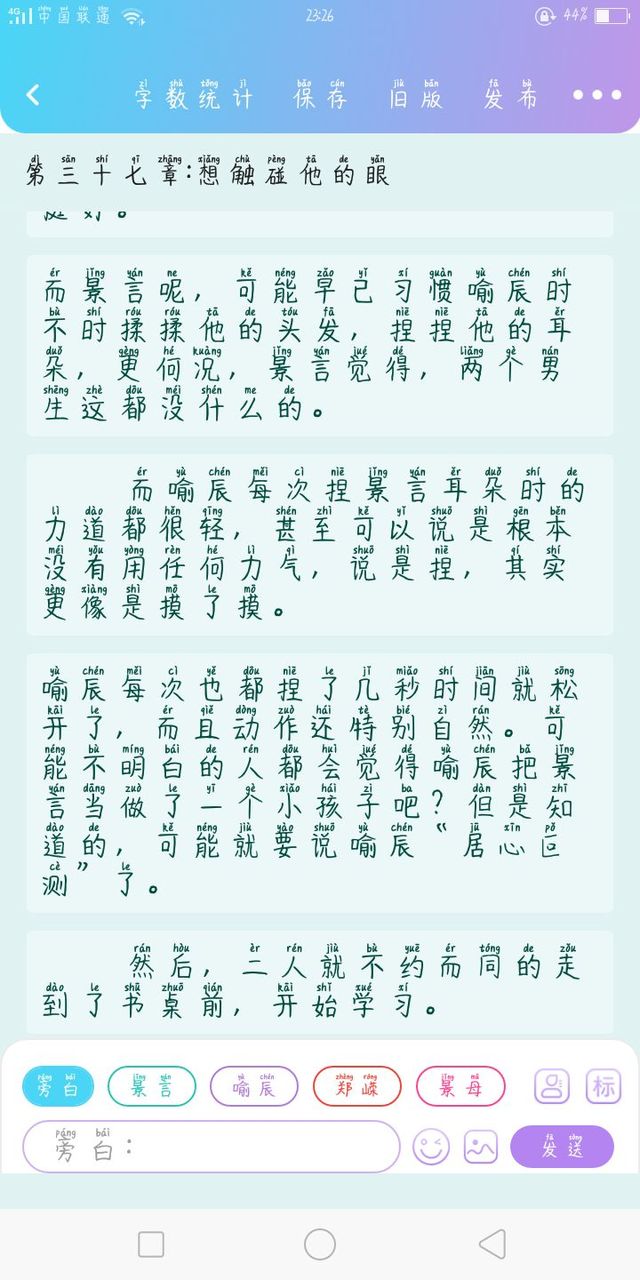 喻辰本以为景言会坐在小书桌前学习,但是景言没有,他在大书桌前坐了下来,问喻辰: