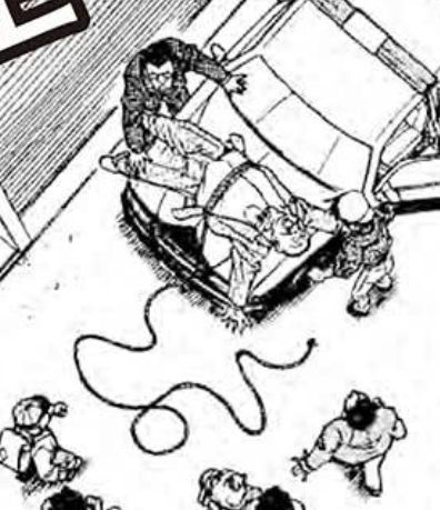 这是男人是突然掉到引擎盖上的,胳膊伸展向上打开,腰上还紧紧系着绳子,