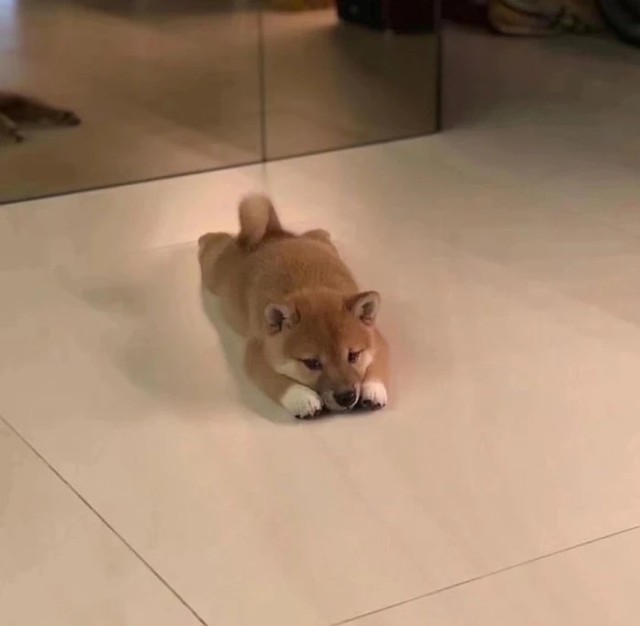 此时的你就特别像打工人回家一样,你回到家后,一只小柴犬跑了出来