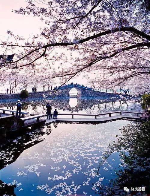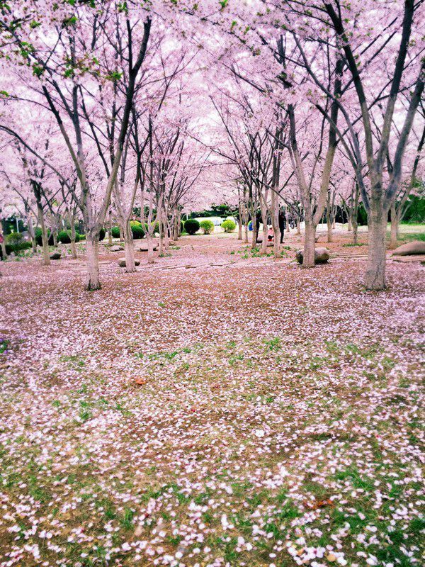 此时的场景是:樱花胜开,中间有一道道樱花小路,看起来十分美丽
