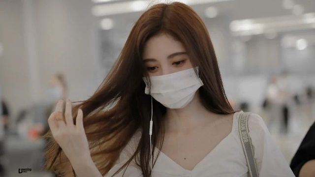 少女似乎是直接下飞机就过来的,白皙的皮肤白的发光,还带着白色口罩。