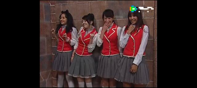 墙角钻出四个女生,一人拿了一个香蕉皮