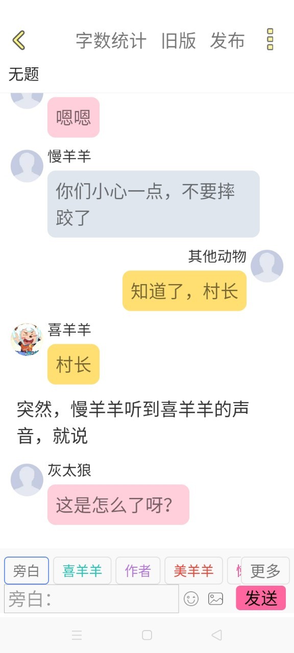 说完,灰太狼和慢羊羊去墙角边谈话,在耳边说