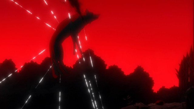 在牙狼冲过去的瞬间,身体上喷涌出殷红的血液,扑倒在地上一动不动。