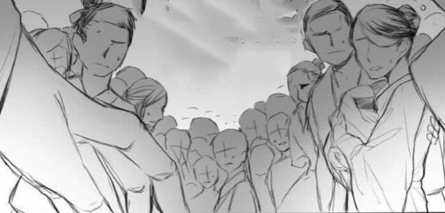 蜂拥而至的百姓根本听不进谢怜的话,有人捂住他的嘴,有人压住他的四肢,再有人双手握起剑……