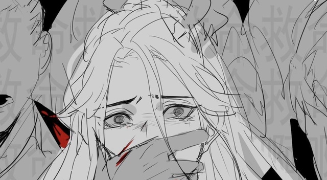 鲜血难掩流露出指缝,谢怜回搂君尧惊厥。