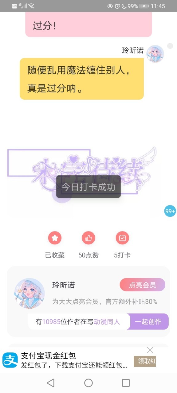 万能角色作者:99+全是这个孩子刷的屏,谢谢你呀,我又有动力更新了。