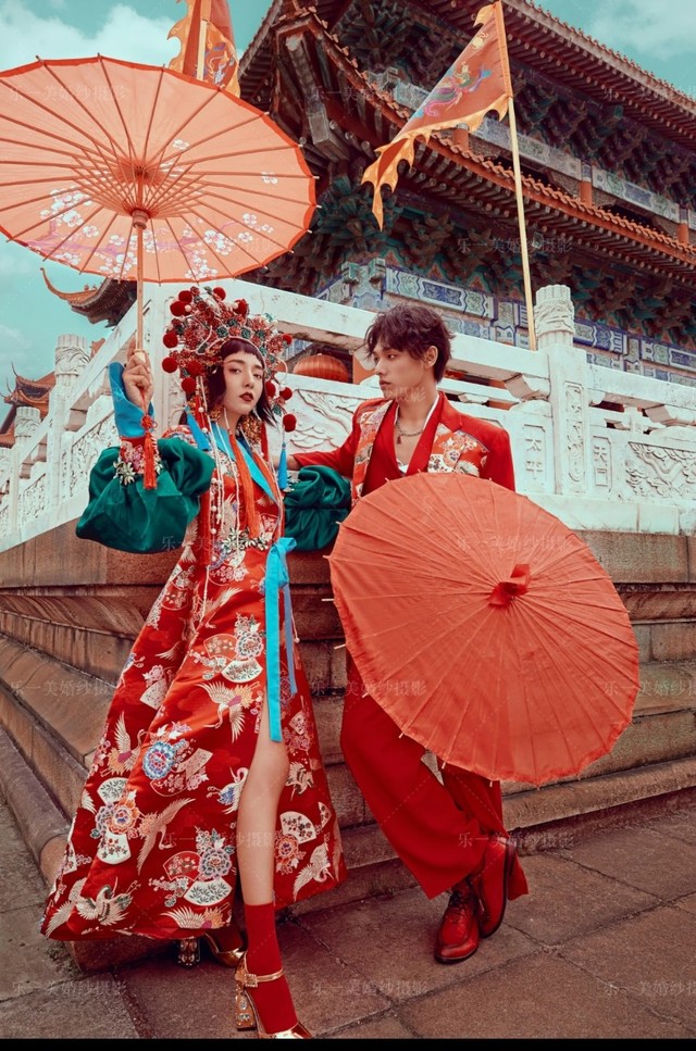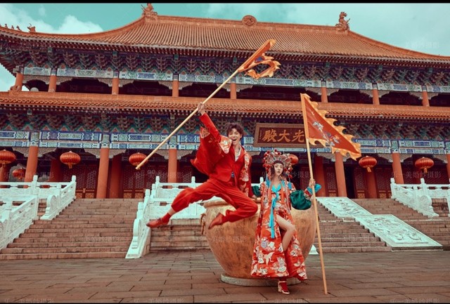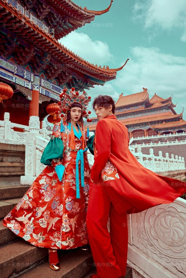 第二套去故宫拍,服装是很有中国特色的,你的头饰也是中国戏曲头面的一种,还挺好看的。