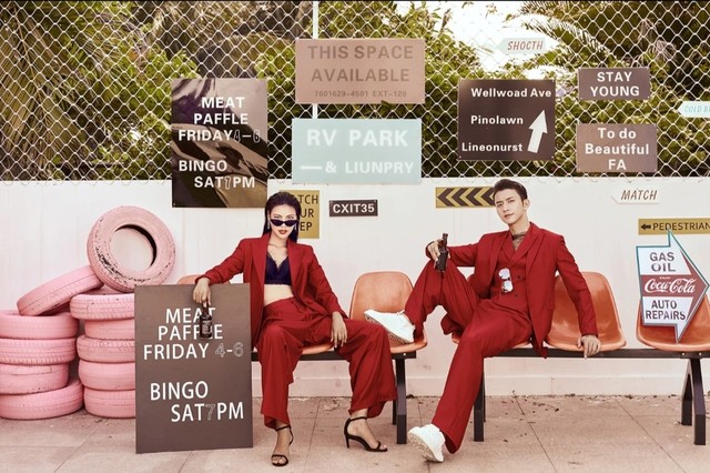 第三套也是红色系,但是就更酷了一些。