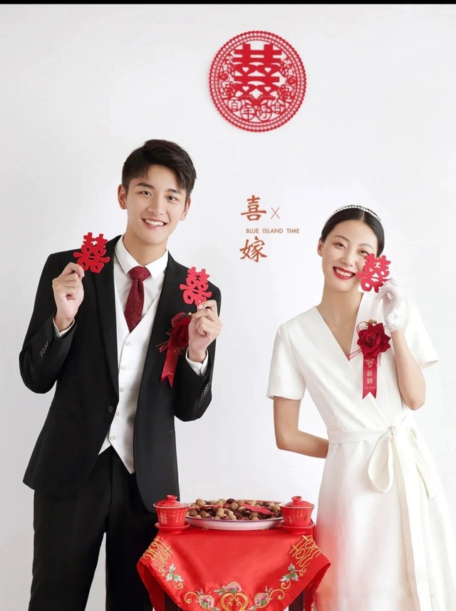 进棚拍摄就简单的多了,拍了一套秀禾服的又拍了套旗袍的,再把昨天在店里取来的几套婚纱各拍一些。