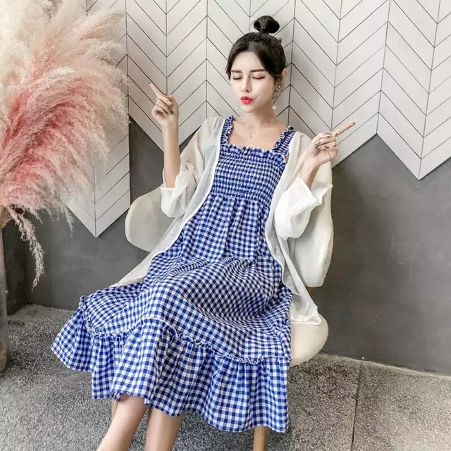 王俊凯拿起了一套粉色的孕妇裙