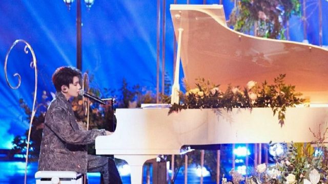 抬头望去,王源早已换上一身西服,坐在钢琴旁,随着指尖的流动,音符随之流淌而出