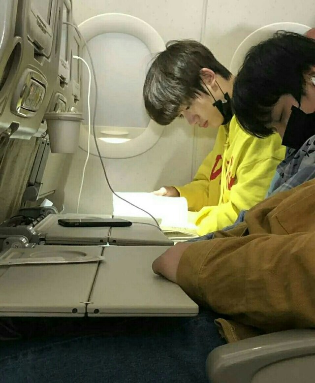 旁边的刘耀文已经睡着了,头靠在丁程鑫肩膀上十分乖巧,丁程鑫在学习中…