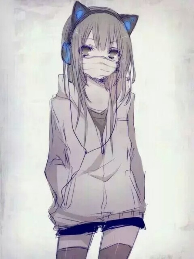 女孩身上穿着制服,耳朵上戴着耳机