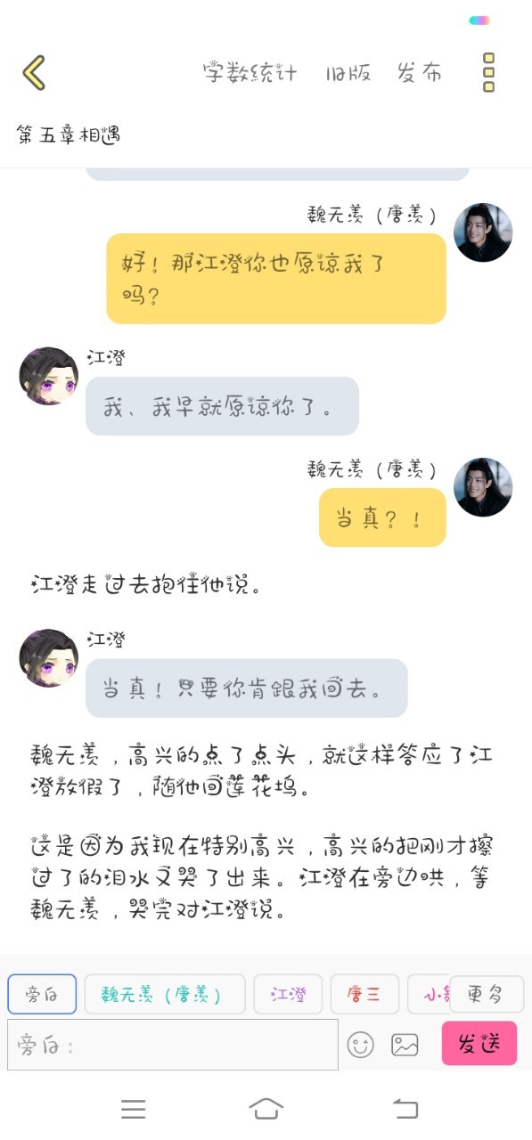 魏无羡(唐羡)嘻嘻,江澄我先走了啊,我先去找三哥了。