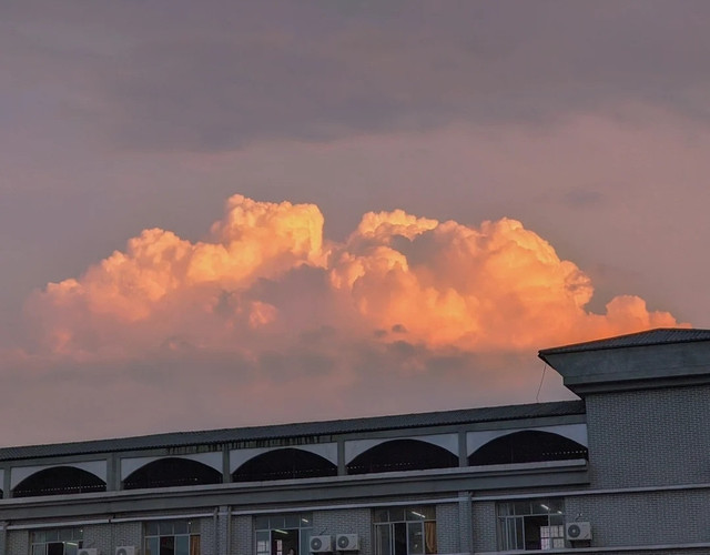 不远处大片大片的云像是喝醉了酒,一边打着酒嗝一边摇晃着笨重的身体,在这个炎热的下午,橘粉色浪漫的晚霞是他们共同的秘密。